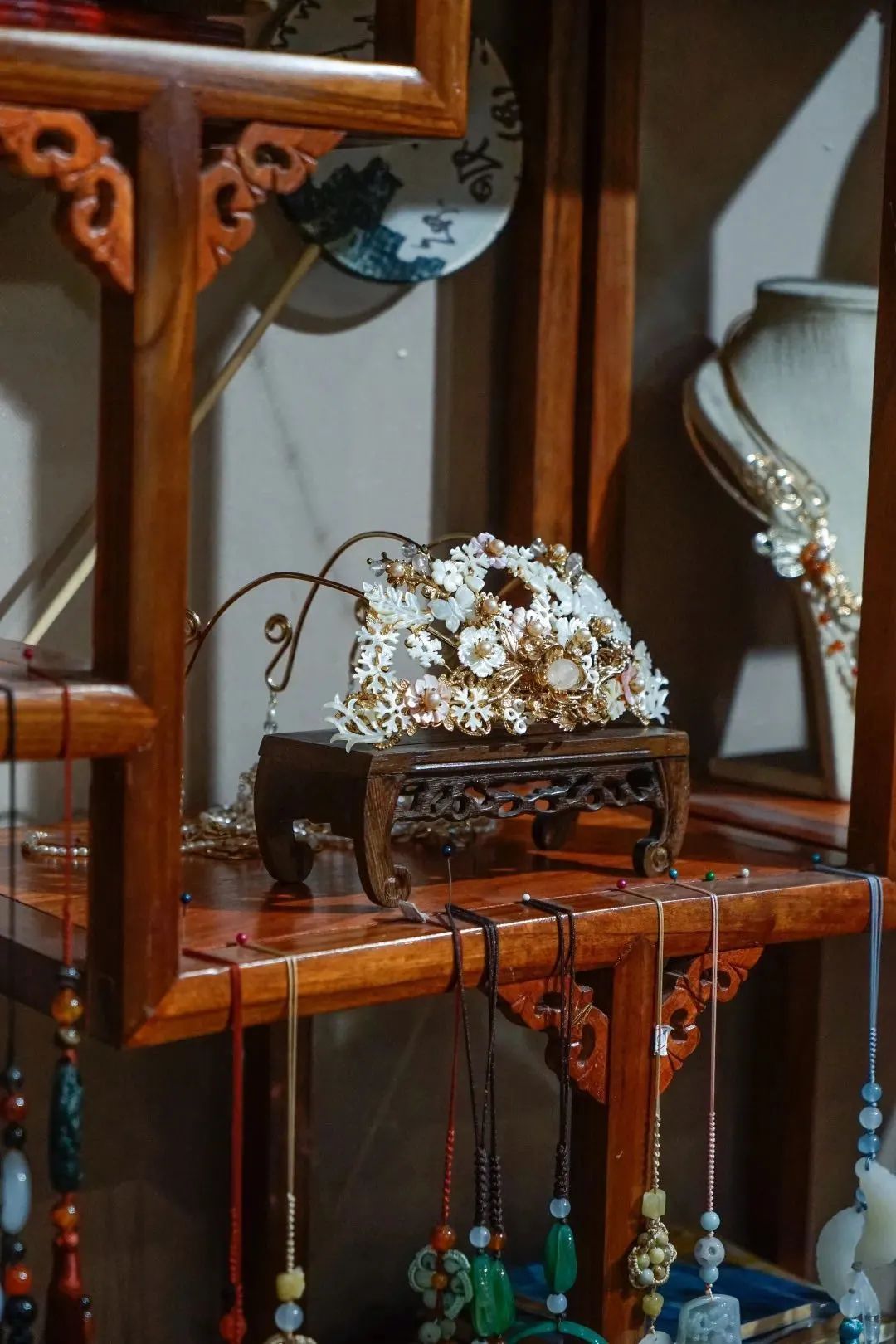 工作室的对面是【徳玺泰的银花丝工艺】。据了解,银花丝工艺拥有两千多年历史,其制作工序繁复,制作工具高达100多种。在徳玺泰,每一件银花丝饰品都是精美的艺术品。正是这些珍惜非遗文化并愿意将它不断传承下去的手艺人,才有了【盖碗梨园】戏院以及【徳玺泰的银花丝工艺】、【邬大师蜀绣工作室】,能够让我们在这里近距离的感受非遗文明。