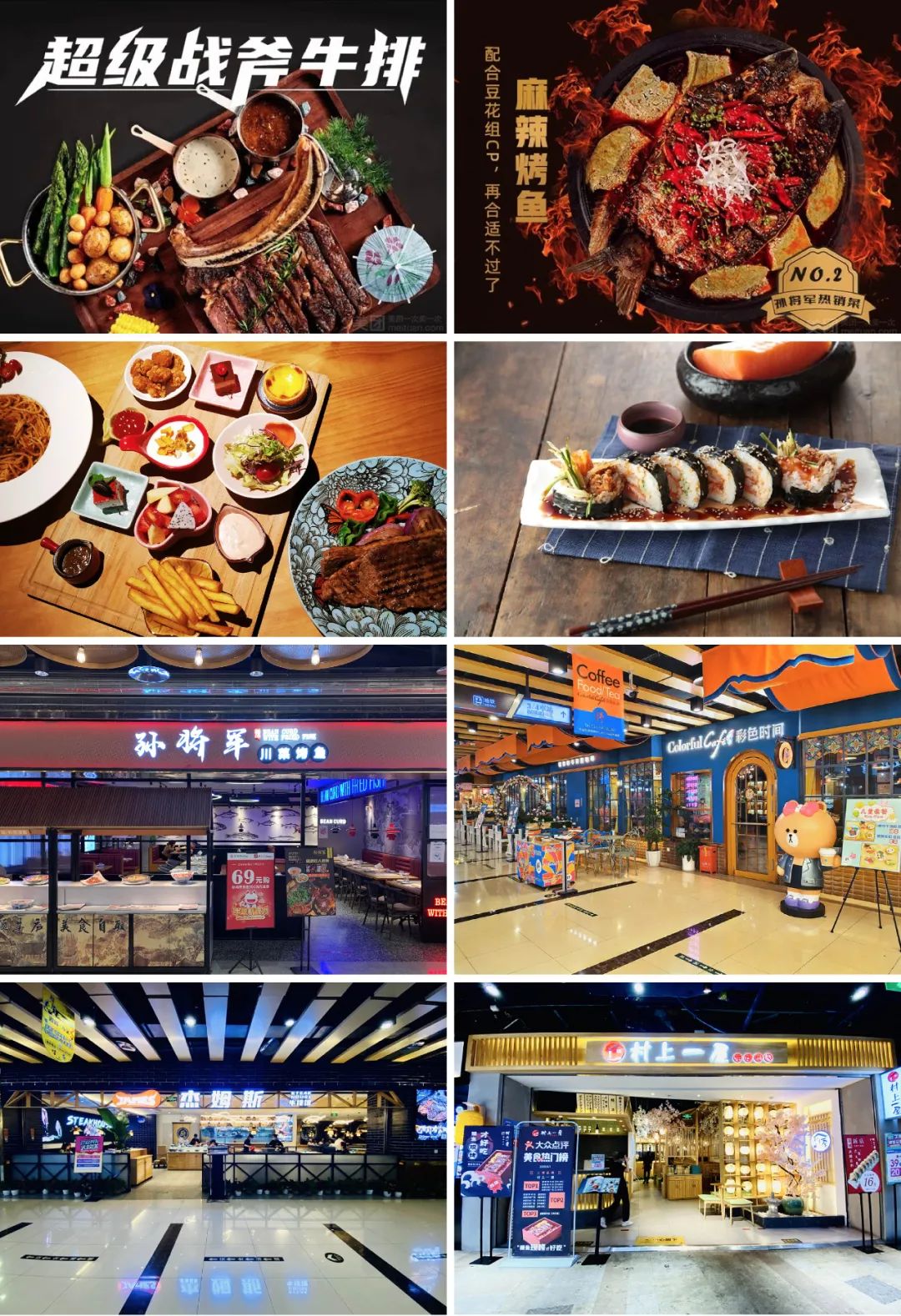 和家人热热闹闹吃顿好的,来【孙将军川菜烤鱼】招牌烤鱼、鲜锅兔,自助甜品随便选。或者去【茗虾荟】尝尝虾的花式风味。想来点异域味道?成都首店【村上一屋】推荐给喜欢日料的朋友。喜欢西餐的朋友推荐你们去【彩色时间】&【杰姆斯】牛排馆,在小资情调中细细品味······