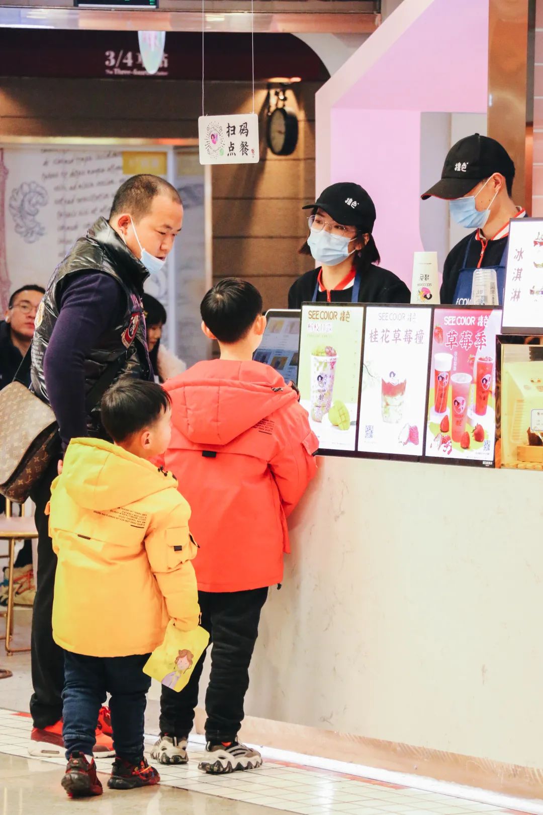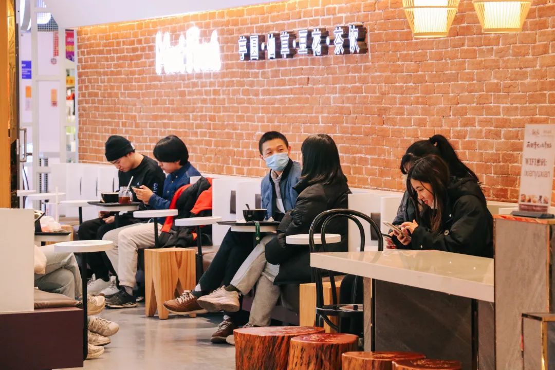 这里,各类网红茶饮品牌随意挑,喜茶、茶百道、一点点、coco、书亦烧仙草、撞色······还有甜品补给站:大通冰室、鲜芋仙,以及满足精致上班族的优选:星巴克、costa······点一杯饮品补充能量后,继续在各类美食中点兵点将。