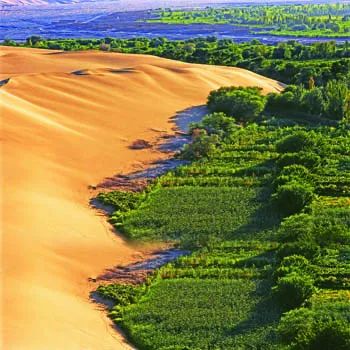 距北京最近的沙漠——库布其沙漠,是我国第七大沙漠,被称为“死亡之海”,面积约1.3万平方公里。过去这里寸草不生,风沙肆虐。经过当地群众、政府和企业携手治沙,在大漠中书写了一部荒漠化治理的英雄史诗,实现了由“沙逼人退”到“绿进沙退”的历史性转变。