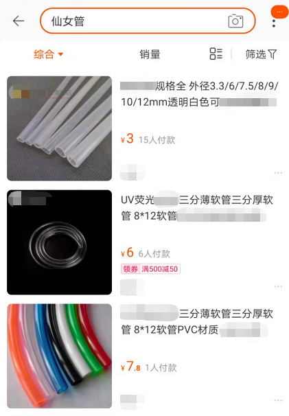 根据型号不同,每根催吐管的价格也不同,从30元到38元左右。此外网上还有针对新手的130元新手套装,以及180元的整套。而所谓的“新手套装”,则由4根直径11mm-13mm不等的塑胶管组成。