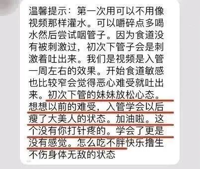 将网购平台上买来的管子往嘴里放,忍住人本能的吞咽反应,一直深入几十厘米,怎么可能不难受?在家自己操作,没有考虑过管子的除菌消毒问题吗?用网友的话说,这就相当于“没有麻醉条件自己天天DIY一场胃镜”。