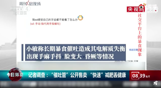 26岁的使用者小敏向记者反馈,自己从小因身材问题受到歧视,几乎每天都会暴食催吐,而自己在长期使用催吐管以后,导致了电解质失衡、代谢失调,自己还出现了手麻手抖、脸变大、昏阙等症状。