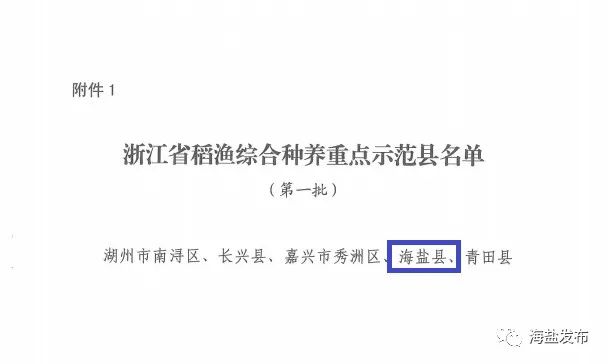 近日,浙江省农业农村厅公布了2020年浙江省第一批稻渔综合种养重点示范县和示范基地建设结果。海盐成功建设省级稻渔综合种养重点示范县,成为全省首批成功建设的5个县(市、区)之一。县内9家种养主体成功建设成为首批省级稻渔综合种养示范基地。