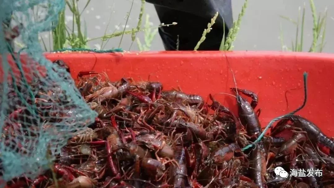 “稻虾共生”是稻渔综合种养模式的其中一种。海盐着力挖掘粮食产业发展增收新动能,以规模粮食种植户为基础,积极推广“稻虾共生”模式,做好“一手种好稻、一手养好虾”,有力推动稻虾产业快速健康发展。海盐还搭建一体化稻渔产业发展平台,打出“盐邑虾旺”和“盐邑禾旺”稻虾区域公用品牌,通过差异化竞争,逐步提升海盐小龙虾在长三角地区的市场认可度。同时,海盐在去年成立了全省首家小龙虾市场,专业从事小龙虾的收购、批发与零售,市场日均成交量达2000多公斤,日均交易额超过6万元。