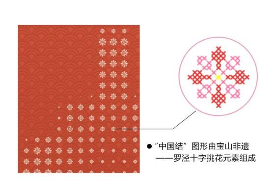 新版折页不仅丰富了展项介绍内容,在设计元素中还将博览馆建筑外形与宝山非遗“罗泾十字挑花”做了巧妙的融合与延伸,突出了展馆展陈主题。