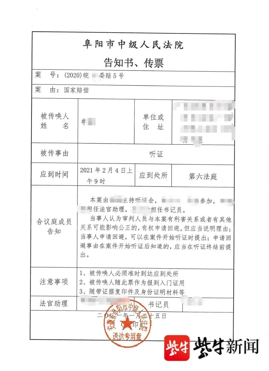 随后,死者申某证家属向阜南县看守所以及阜南县公安局和阜阳市公安局先后提起国家赔偿申请以及复议申请。2020年11月25日,死者申某证家属向阜阳市中级人民法院提起了对阜南县公安局、阜南县看守所的国家赔偿案的起诉。周兆成律师说:“阜阳市中级人民法院对该案听证开庭,标志着该案正式进入国家赔偿程序。”