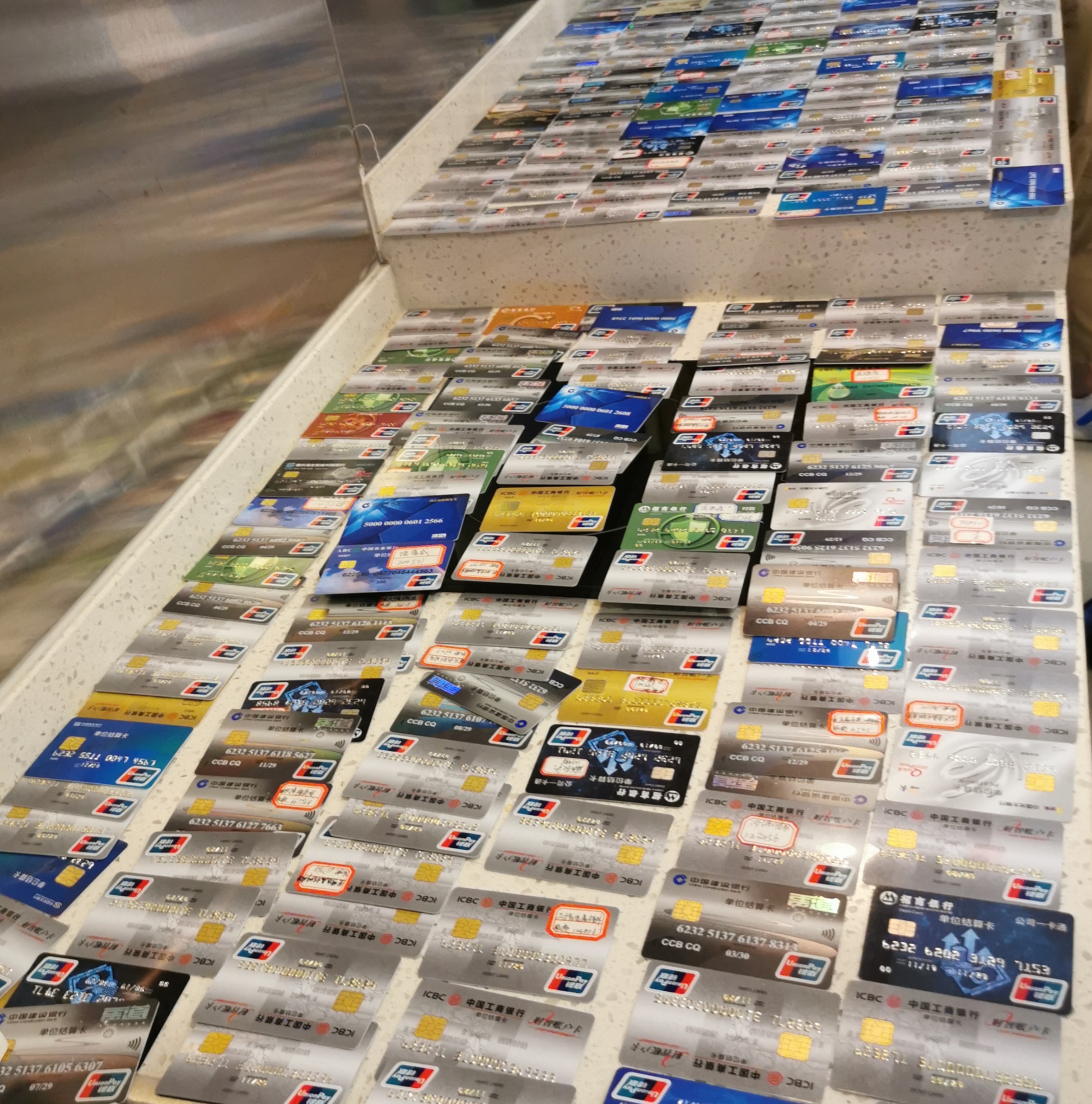 民警缴获的部分用于转移资金的银行卡。重庆警方供图