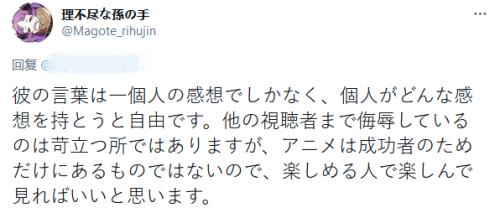 这边的“风声”还传到了日本原作者“不讲理不求人”那里。对于LexBurner的言论,他留言回复道:“他说的话只是个人感想,想说什么都可以,但侮辱看片的粉丝就不对了。动漫并不是只给成功人士看的,只要能够享受动漫的乐趣就行了。”