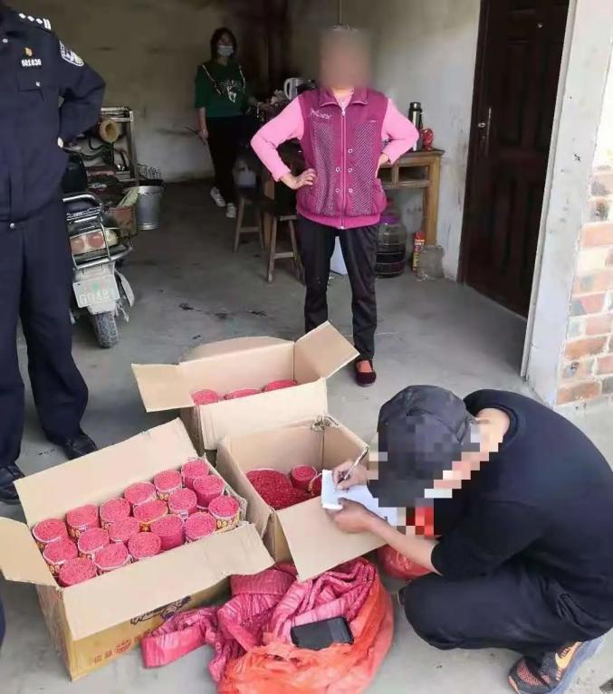 2月3日11时许,玉州区“禁燃办”、应急管理、城站派出所等部门组成联合执法组对南江街道岭塘村进行检查时,发现村中一小卖铺内非法储存有爆竹。