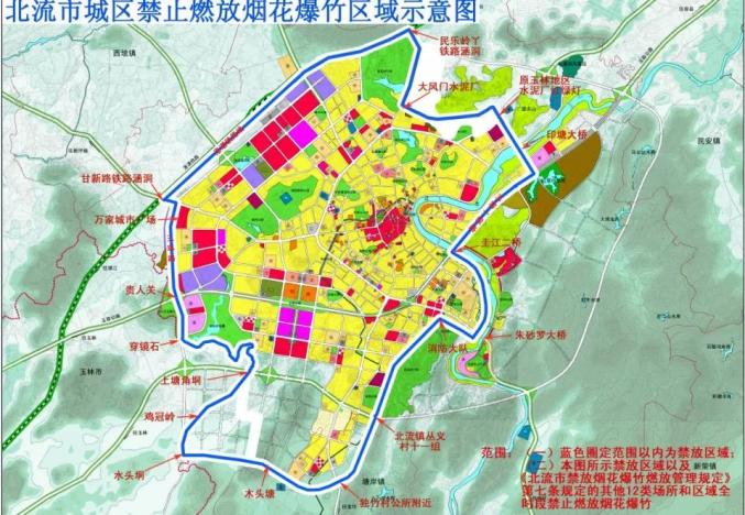 北流市城区设置的禁止燃放烟花爆竹区包括: