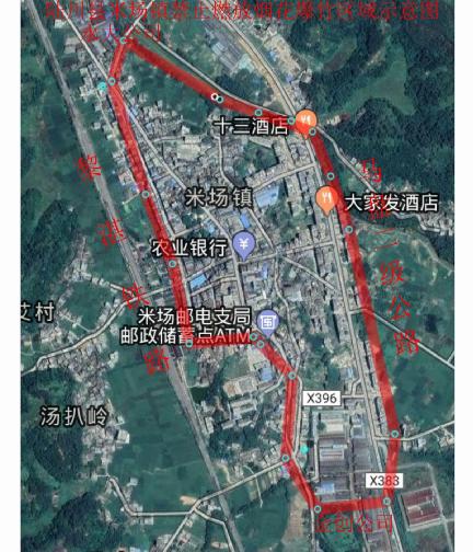 米场镇禁止燃放烟花爆竹区域范围示意图