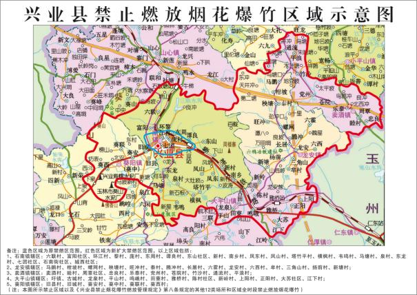 兴业兴业县禁止燃放烟花爆竹区域(详见附图)包括:
