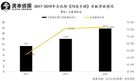 但这也成了吉比特当前的困境。手游版《问道》2017年至2019年分别贡献营业收入9.34亿、11.96亿、15.76亿,占总营收的64.89%、72.26%、72.62%。“报告期内,公司收入中来自问道手游的比例比较高”——吉比特公司2019年年报这样阐述。市场的担忧,吉比特显然也有意识到。游戏是工业和艺术的结合,这样的结合就意味着两个方面都有难度。
