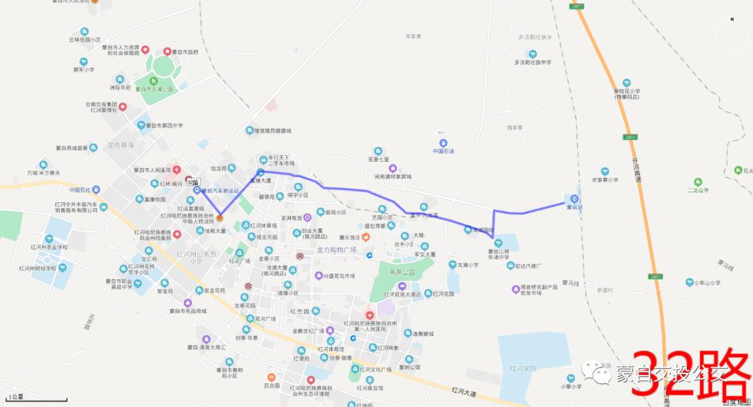 32路:蒙自汽车客运站--蒙自火车站(红河大道)起点首末班时间