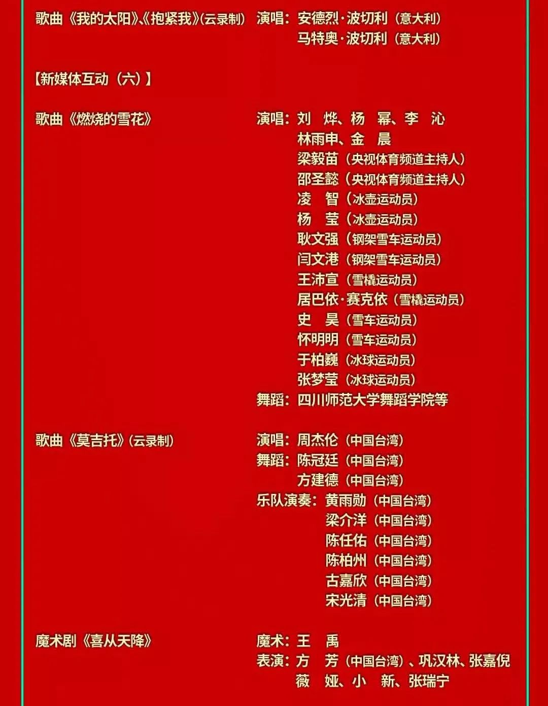 春晚节目单来了!