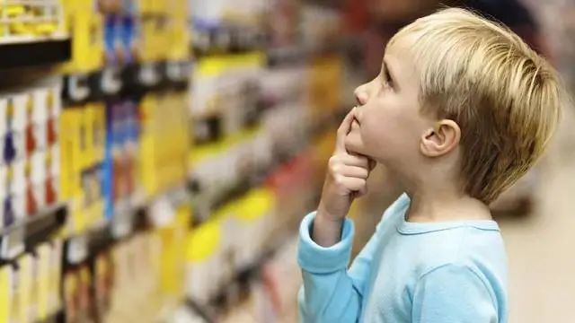 一个两三岁的小男孩想要货架上的蛋黄派,但妈妈不同意“蛋黄派里都是添加剂,吃了会拉肚子的哦~”
