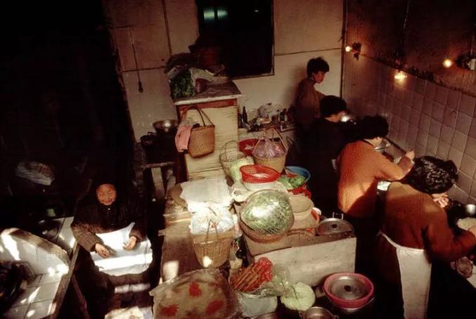 1993年,上海一处弄堂灶间里,隔壁邻舍一边嘎讪胡,一边准备年夜饭,充满了浓浓的年味和生活情趣图片摄影 | Stuart Franklin | Mugnum Photos 授权
