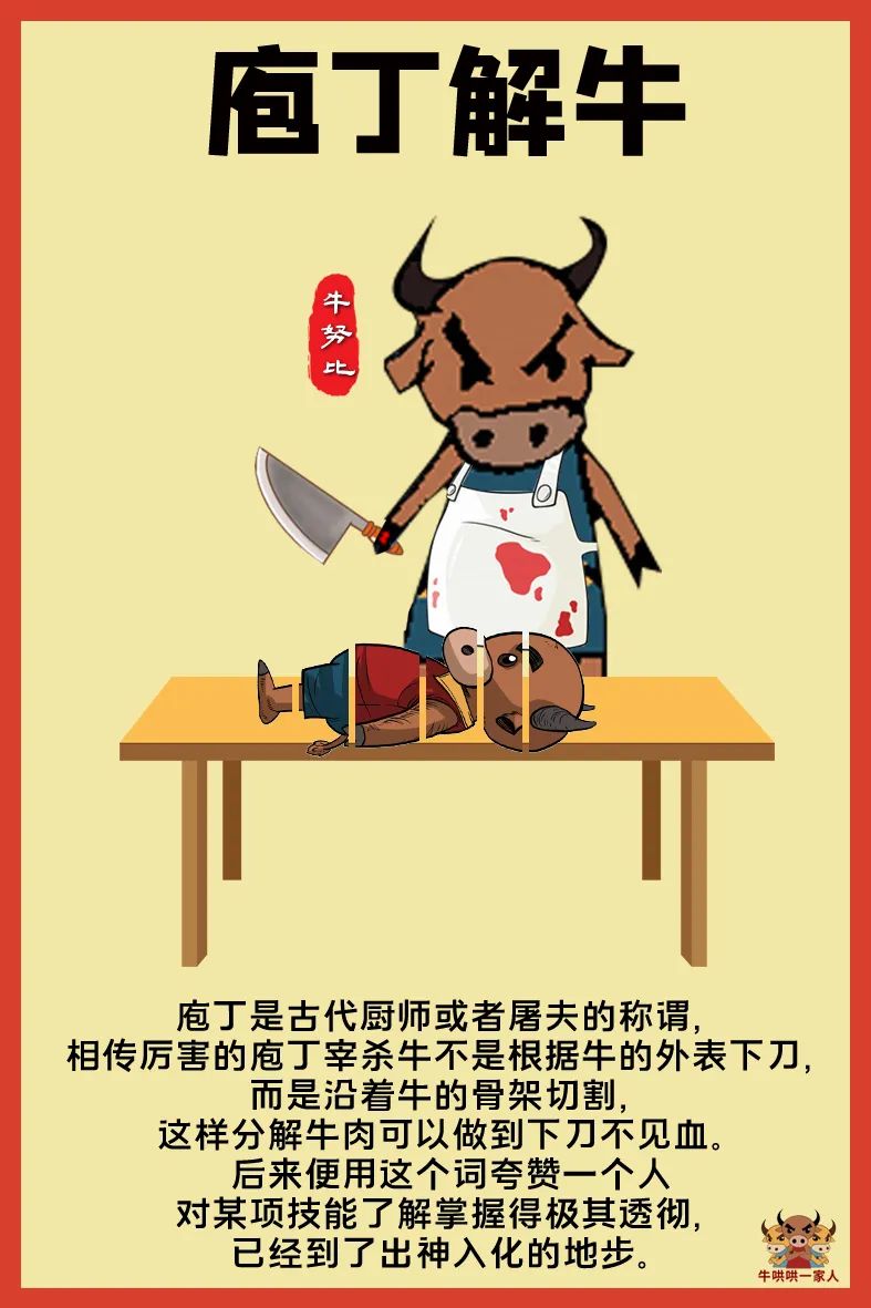 新年新气象,牛年马上到来,不如赶紧学几个有关牛的新成语来夸人,既应景又可以学知识,好处多多。牛作为农民的好帮手,一直深受有着长久耕种历史的中华民族喜爱。因为驯服的牛十分温顺听话、力气又大,而且只需要吃草,相对比较好养活,是性价比很高的帮手,可以帮农民分担许多农活。所以,在中国历史中,有关牛的词语很多都是正面的,用来夸人的更是不少,例如夸人有能力的牛刀小试,夸人勤奋好学的牛角挂书,夸人有干劲有激情的初生牛犊等等。新的一年,用和牛有关的成语夸起来,过一个吉祥和睦幸福年。原标题:《@井陉人,与牛相关的成语,您还知道几个?》