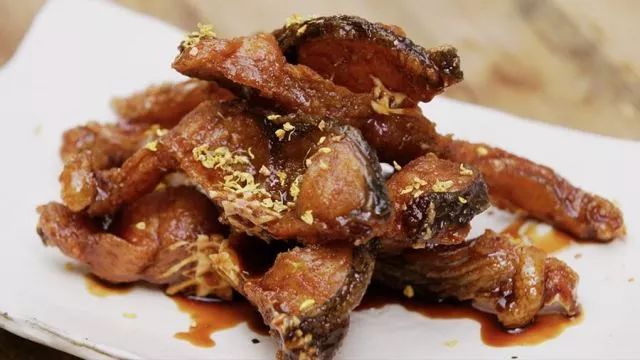 对上海人来说,熏鱼是最具特色的本帮菜之一,除夕的饭桌上怎么能少了这道菜!去头去尾的青鱼段片成一公分厚的薄片,炸的金黄才出锅,吃起来又香又脆,令人欲罢不能~04