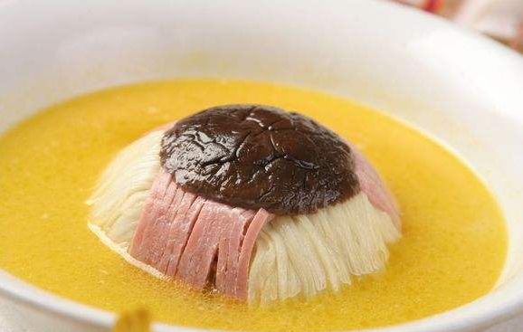扣三丝属于上海本帮菜代表性菜肴之一,选料超级严格,刀工十分精细,整齐美观。鸡丝、火腿丝和笋丝相间,像一座小山,汤汁澄清,整道菜看起来就很貌美。11