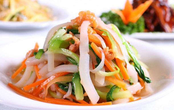 上海宁年夜饭里必备的冷菜,海蜇皮搭配萝卜丝,清爽开胃,而且不含脂肪,吃多少都不会胖,惹得美少女忍不住吃了一口又一口~18
