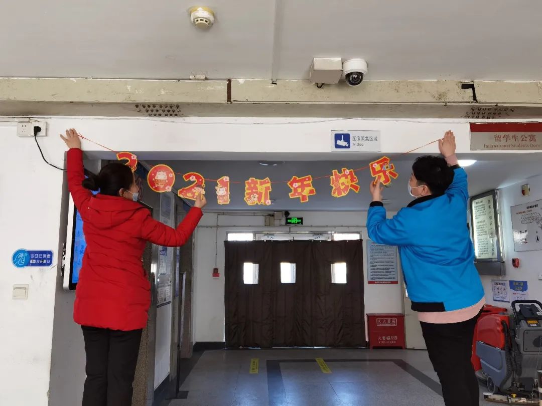 03开展暖心特色活动,线上“四史”分享会、线上体验北京年味民俗文化、“春节留影”活动、“一封家书”活动丰富留校学生过年生活,个性化准备年货大礼包,设计发放专属贺卡、春联、福字和红围脖,传递学校关心关爱,并在除夕当天免费为留校学生提供丰盛的午餐、年夜饭和春节饺子宴,让留校学生也能感受到家的温暖。