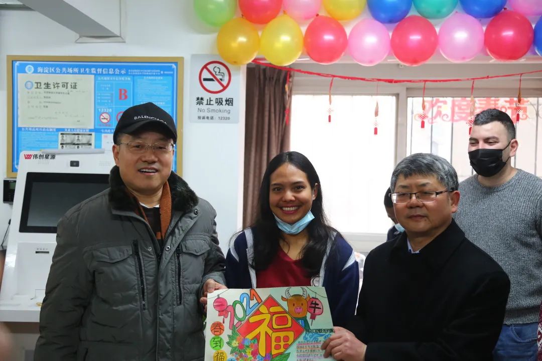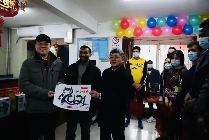 在留学生公寓,留学生们精心准备了几幅手工画回赠校领导,简单的礼物寄托着留学生对学校的深厚感情和对新年的美好祝愿。