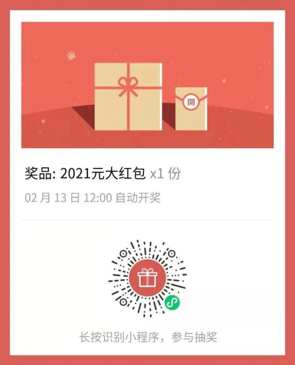 一、抽奖获得2021元大红包