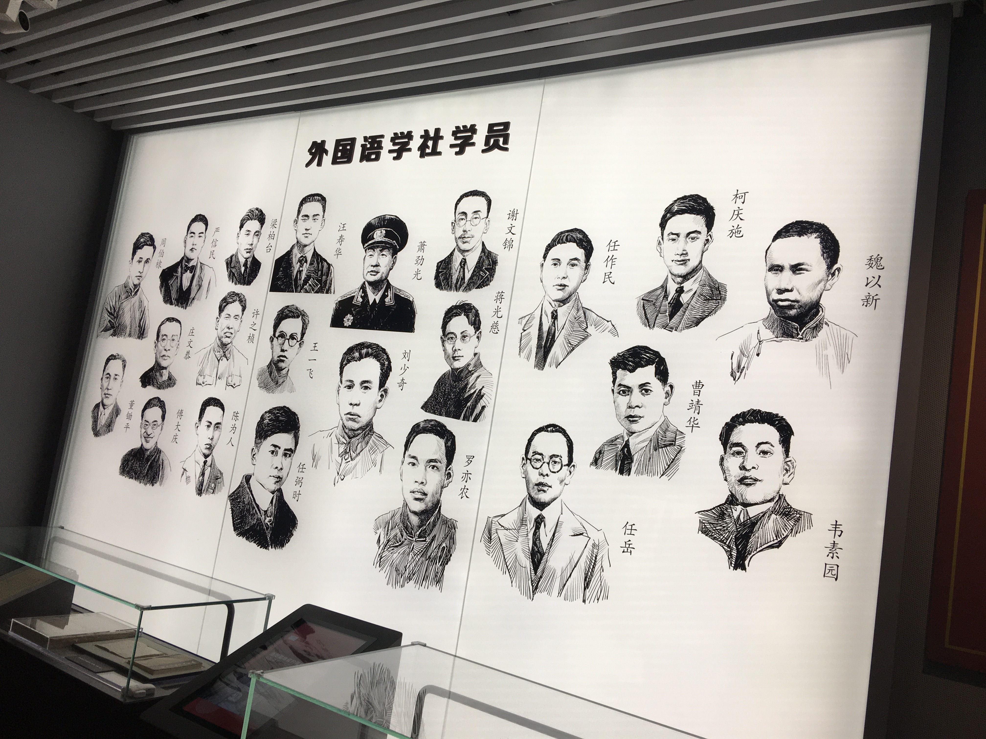 参观完老渔阳里二号,我会带领大家沿着南昌路往西走到思南路,再转入淮海中路,不到100米就能看到一个广场,白色的浮雕墙有一把熊熊燃烧的火炬,旁边是七个红色的大字“锦江渔阳里广场”。浮雕墙上镌刻的是中国共产主义青年团的大事,浮雕墙前面,有一条布道,布道上记录着共青团的大事记,走完布道就大致了解了共青团的历史。浮雕墙上有一扇石库门造型的门,走进这扇门,仿佛穿越时空,从2021年走进了1920年,一百年前那群志在探寻真理的年轻人唱响的青春之歌至今还在石库门弄堂里回响。新渔阳六号从1961年就被国务院确立为全国重要文物保护单位,2018年至2019年进行了修缮,2020年重新开放。新渔阳里六号中国社会主义青年团中央旧址纪念馆由渔阳里广场、纪念馆和旧址三大部分组成。纪念馆一楼的大厅有一组八位上海社会主义青年团创始人的群雕,题为《先驱》。二楼的墙上有外国语学社学员的画像,包括刘少奇、萧劲光、任弼时等人,他们中的很多人后来担任了党和国家领导人。1918年李汉俊从日本回到上海后,就和他的兄长李书城居住在这里,他们搬到白尔路三益里17号后,新渔阳里六号转给戴季陶居住,1920年6月戴季陶离开上海,新渔阳里六号又成了共产国际代表团翻译杨明斋的住所。杨明斋是一位忠厚长者,这里就成了年轻人经常集会的地方。1920年8月22日,上海社会主义青年团在这里成立,之后,又在这里开办了中国共产党第一所培养干部的学校——外国语学社,学员们在这里学习英文、俄文、日文以及马克思主义理论,又从这里出发,踏上了前往苏联留学的道路。新渔里六号的楼下是一个教室,楼上是杨明斋、俞秀松办公室和学员们的宿舍。修缮一新的纪念馆里新增了很多珍贵的历史文物,包括俞秀松曾经睡过的床,那是他的妻子安志洁当年从新疆背回来的,还有施存统当年的很多藏书。