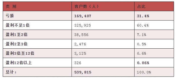 具体看,通过分析截止到2016年7月19日的持有人盈利数据,嘉实基金发现成立13年以来有31.4%的投资者发生了亏损,而在13年的时间里赚到了钱但赚钱不足一倍的投资者更是占到了60.4%,两者加总在一起的投资者占比已经高达91.8%。
