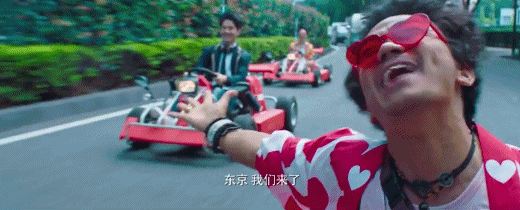 除此之外,《唐探3》在视觉上还有一大特点:游戏感。比如东京街头的卡丁车竞速。