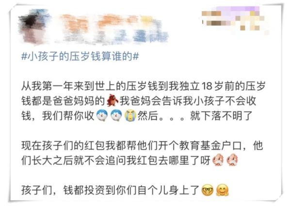 孩子得来的压岁钱,该给谁?除了分享自己的童年春节经历,也还有网友在讨论:孩子得到的压岁钱应该由谁保管呢?