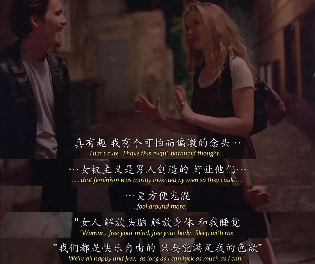 在男性主导的电影界,由男人决定女性角色是什么样,早就是见怪不怪的事。但本系列的导演Richard Linklater却坚持认为这段美好爱情,一定不该有性别偏见。我需要聪明、强势的女性角色……她和他,势均力敌,完美搭档。