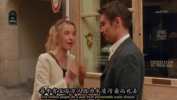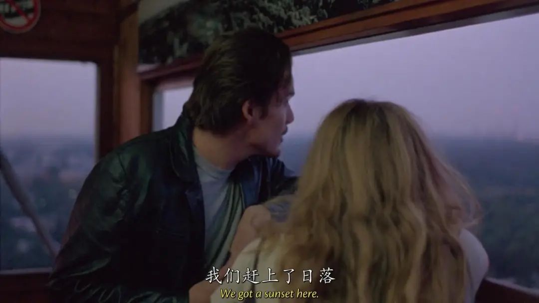 02 《爱在日落黄昏时》九年之后,作家Jesse来到巴黎发布描写二人浪漫一夜的新书,和Céline在书店再次相遇。两人在城中漫步、泛舟,当晚要乘飞机赶回美国的Jesse却一留再留。