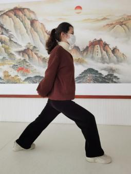 站直,一条腿尽量往后踏一步,保持鞋底着地,身后的那条腿保持笔直,前腿弯曲,身体垂直。双臂尽力往后拉。坚持8-12秒,换腿再做一次。