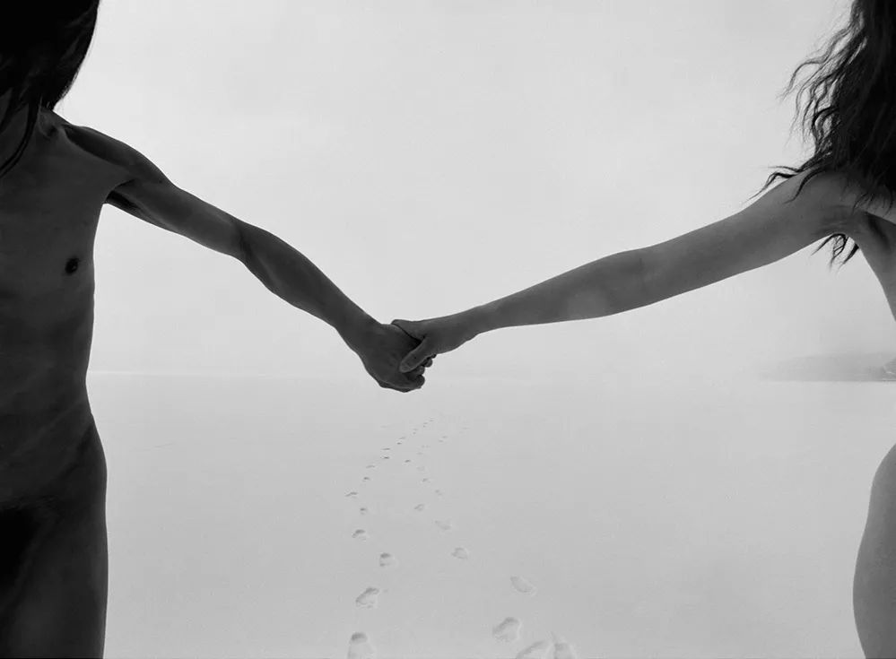 中国摄影师荣荣与日本摄影师映里在新婚后共同创作了系列《富士山》,他们在冰天雪地里架起相机,赤身裸体在天地间奔跑。通过身体和即时灵感的引导下,两人回应着彼此和外界环境,他们的动作和行为最终被定格成照片,浪漫又纯净。