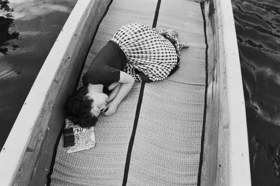 20世纪60年代,年轻的荒木在电通工作时,认识了后来的妻子洋子,蜜月旅行中,荒木给洋子拍了很多照片,直到她去世,《感伤之旅》由此诞生。这张照片里,洋子衣着优雅,躺在船里,显得有些忧伤、脆弱。荒木捕捉这些瞬间是属于个人的,它源于一种自然冲动,而不是一种意图。