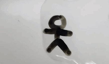 用白板笔(注意一定要是白板笔)在光滑的瓷盘/玻璃上画一个小人。等待笔迹干燥之后,从旁边慢慢地倒上一点水。顺利的话,可以看到笔迹脱离表面,完整地漂浮到水面上。