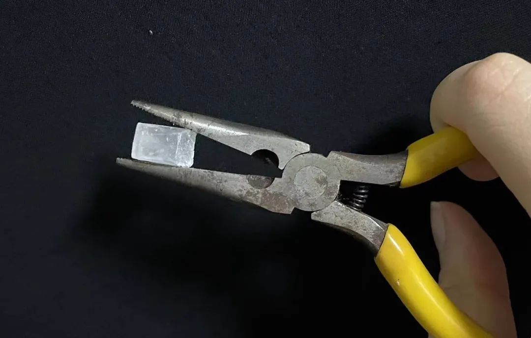夹碎冰糖可以看到蓝光(当然,在暗处才能看到) | 作者拍摄首先,用钳子夹住冰糖块,然后在黑暗的环境中呆上几分钟,让自己的眼睛适应。接下来,只要用钳子用力夹碎冰糖,就可以观察到一道蓝色的闪光——鉴于人眼不擅长在暗处辨别颜色,它看起来一般是蓝白色的。