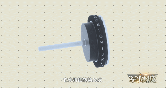 机器的心脏是一个有电线相连的转子,它会持续转换26次,每一次键入“A”出来的都是不同的字母。这个转子下面还有一个转子,有点像汽车里的里程表,旋转一周走一个字。下一个转子也会转,于是就会产生26x26x26,也就是17000多种变化的密码。