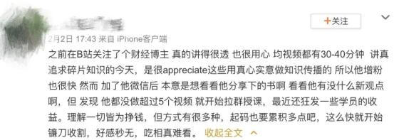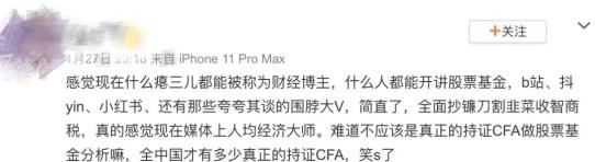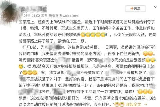 一名粉丝数有67万的B站基金UP主在今年1月下旬称,收到B站相关人士提出的要求,后续不能再在B站上发股票和基金相关视频,除非持有CFA证书才可以。该消息在B站基金圈内一度引起轰动,另有个别基金类UP也表示被“查证”。