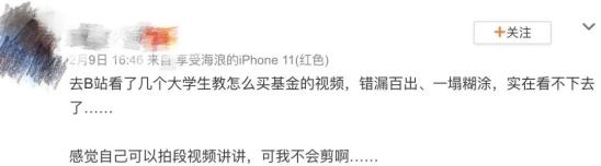 上述90后可能是投资“幸运儿”,有网友表示作为一名财经小白曾到B站寻求投资帮助,结果试水基金后却出现亏损。