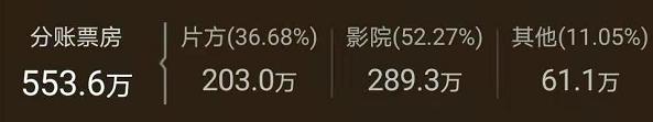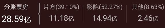 截至21年2月16日该电影票房28.59亿,主要分成方包括片方和影院,其中影院占大头52.27%,制片方只有39.1%。片方和影院分成比例是两者协商的,有票房号召力的导演或演员片方分成就会高点,查到春节档另一部电影《马永贞之闸北决》片方分成只有36.68%