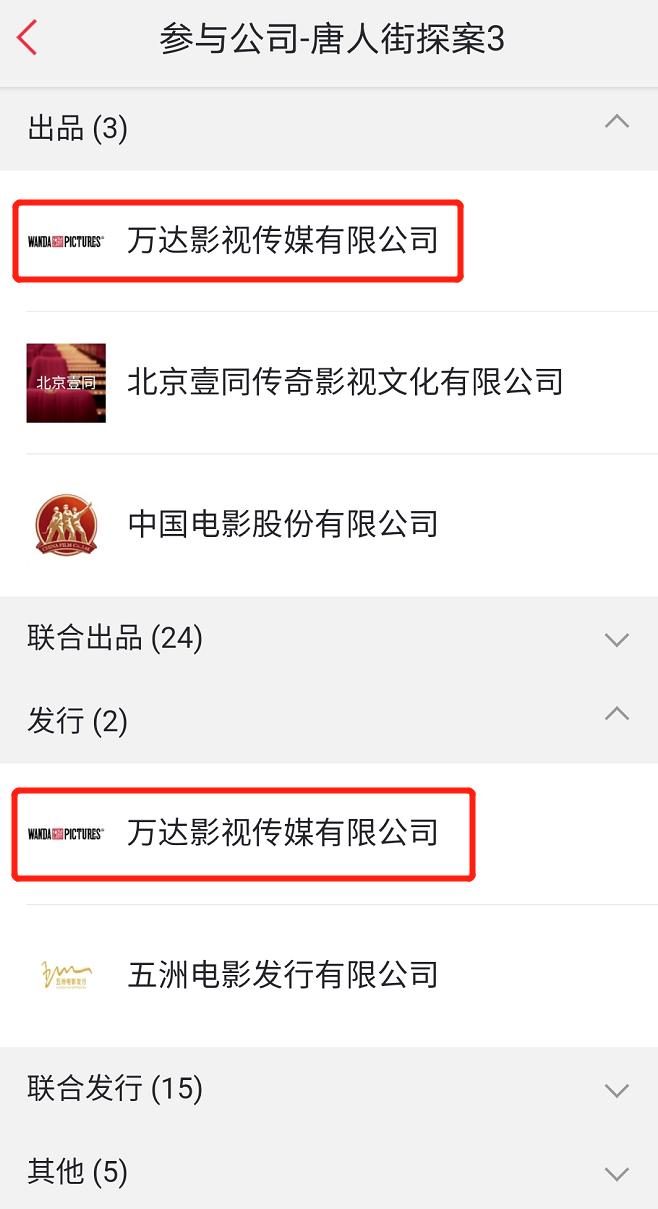 万达还不只这块收入,万达是唐探3主要的出品方和发行方