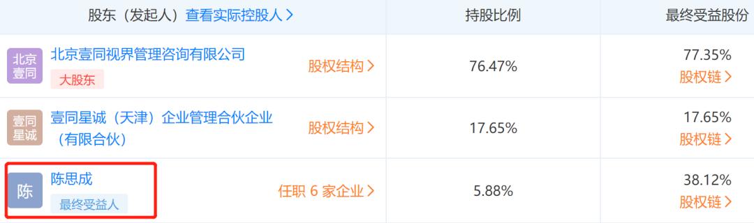 大股东北京壹同视界管理咨询背后持股80%的人叫陈胜奇