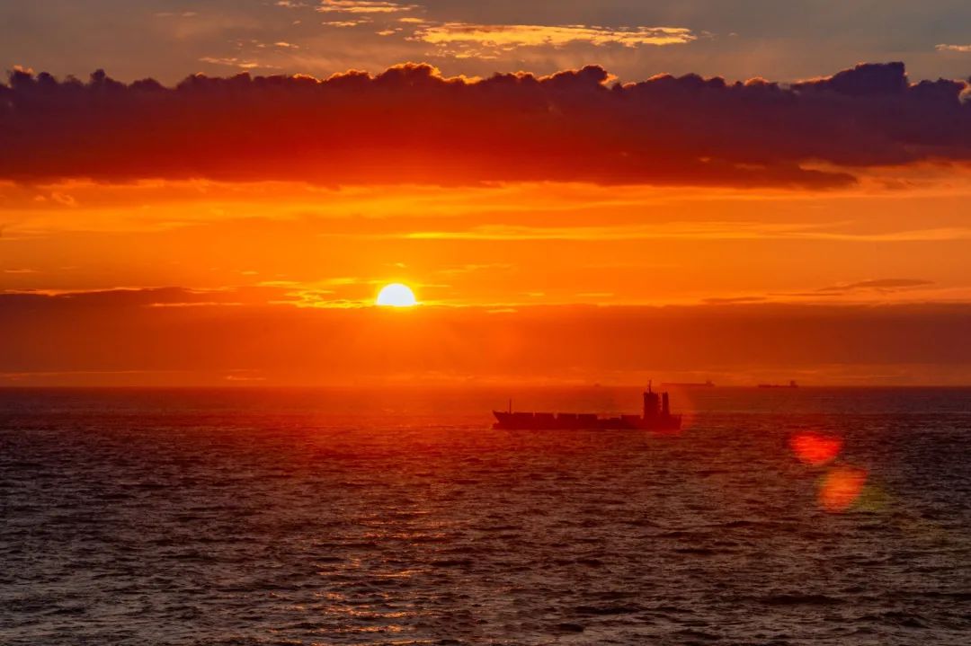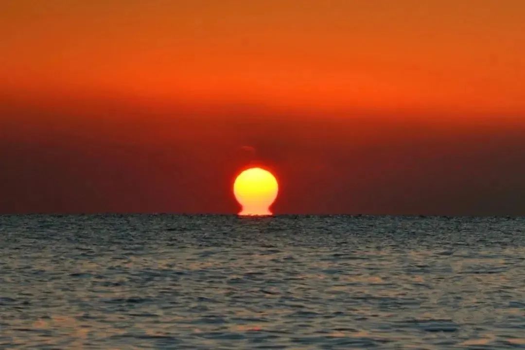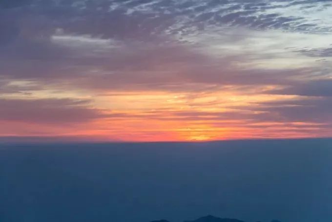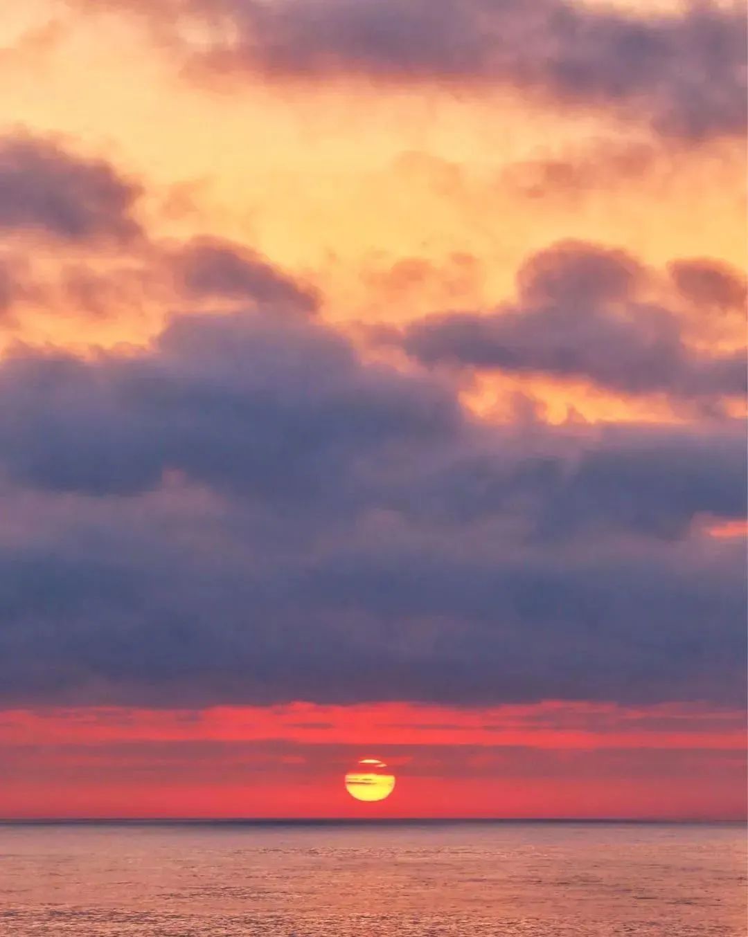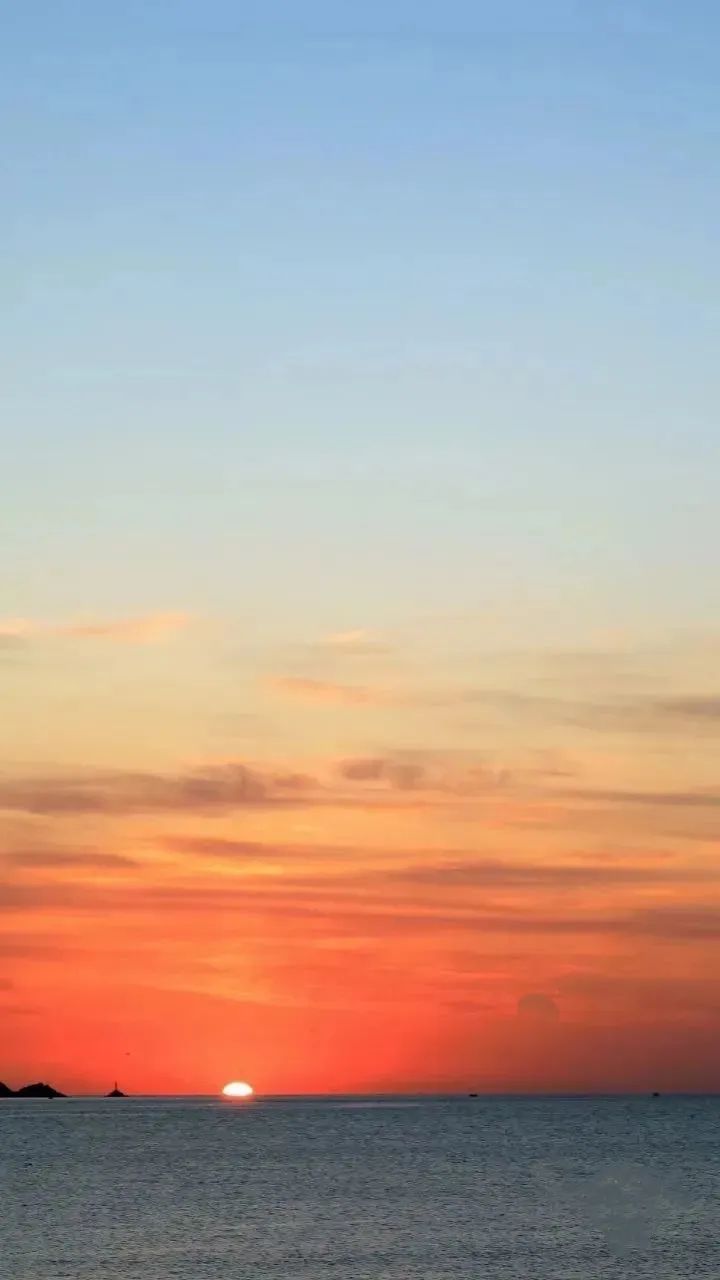 拂晓的天空,云彩正布置着色彩,朝阳仿佛穿过海浪喷薄而出,海水奔腾汹涌,一时间旭日东升,海天相连,因早起的疲倦感一扫而光,剩下的,只有对大自然无限的赞美与感叹!