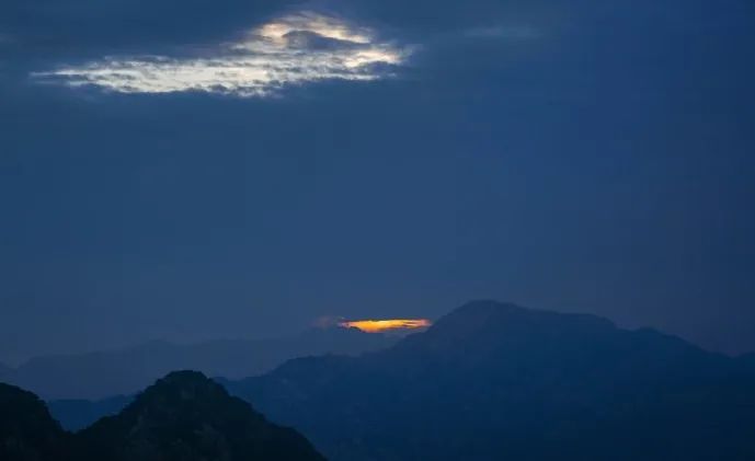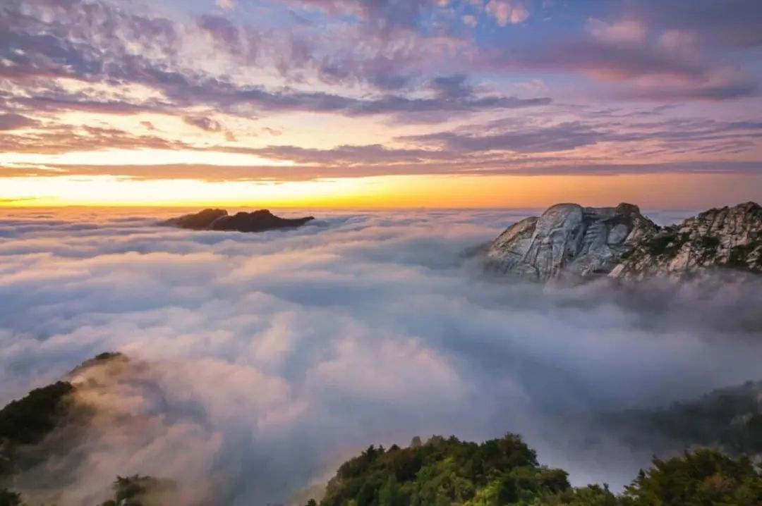 凌晨梦醒,天际微白,大片云朵环绕山间,日出时,山下的雾海会抬升成云海,蒙山寿仙若隐若现。雾来时,极目远眺,苍苍茫茫,蒙山寿仙成为朦胧的剪影。雾散时,阳光温柔地洒在山顶,把远处的山色都映照得分外清晰。真可谓是“云来山更佳,云去山如画”。
