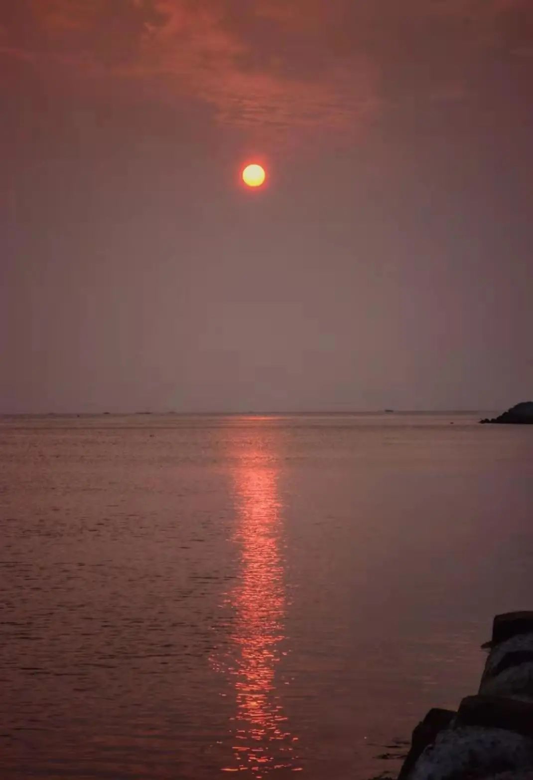 看星月消逝,东方泛白,直到那一抹亮光点燃沉寂的天空。太阳从地平面缓缓升起,朝霞渐渐染红天空,活力、新生、喜悦,那一刻,美得摄人心魄的天空,会告诉你,等待有多么值得。青岛崂山