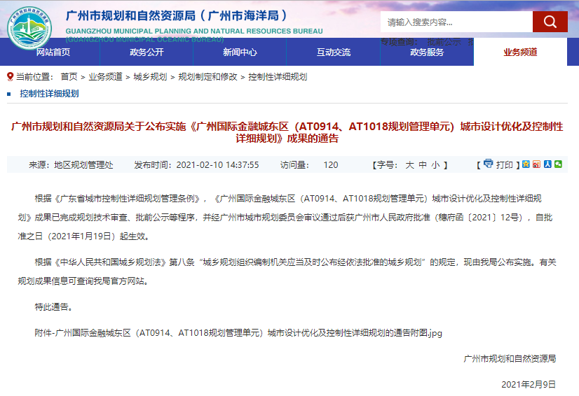 作为广州东进的重要节点,近日,《广州国际金融城东区(AT0914、AT1018规划管理单元)城市设计优化及控制性详细规划》正式获广州市政府批准,并由广州市规划和自然资源局公布实施。
